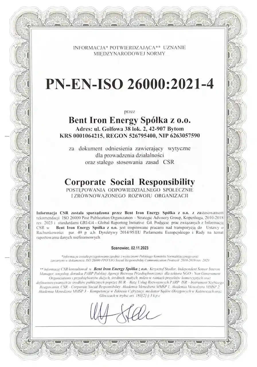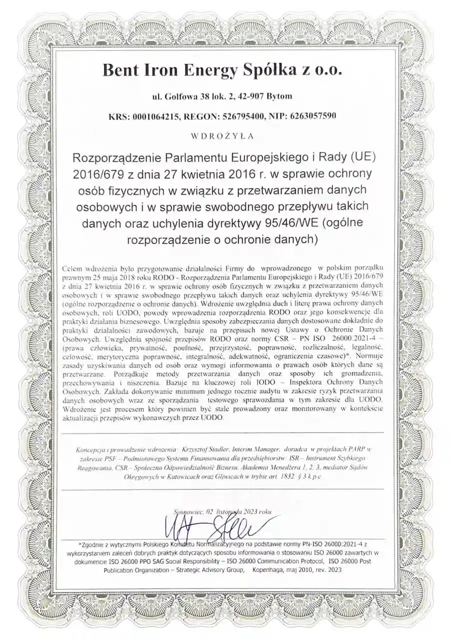 Doświadczeni, wykwalifikowani i certyfikowani specjaliści działu serwisowego Bent-Iron prowadzą szkolenia Państwa personelu zarówno podczas pierwszego uruchomienia urządzenia, jak i podczas każdej konserwacji technicznej.