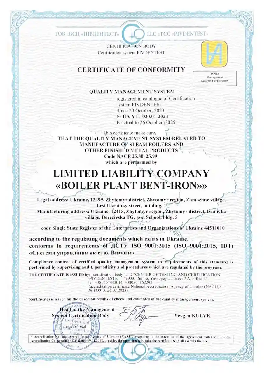 Wytwornice pary Bent-Iron wyposażone są w nowoczesne systemy automatyki oparte na sterownikach Siemens. Wszystkimi układami można sterować za pomocą panelu dotykowego znajdującego się na szafie sterowniczej lub zdalnie za pomocą systemu dyspozytorskiego i zdalnego monitoringu.